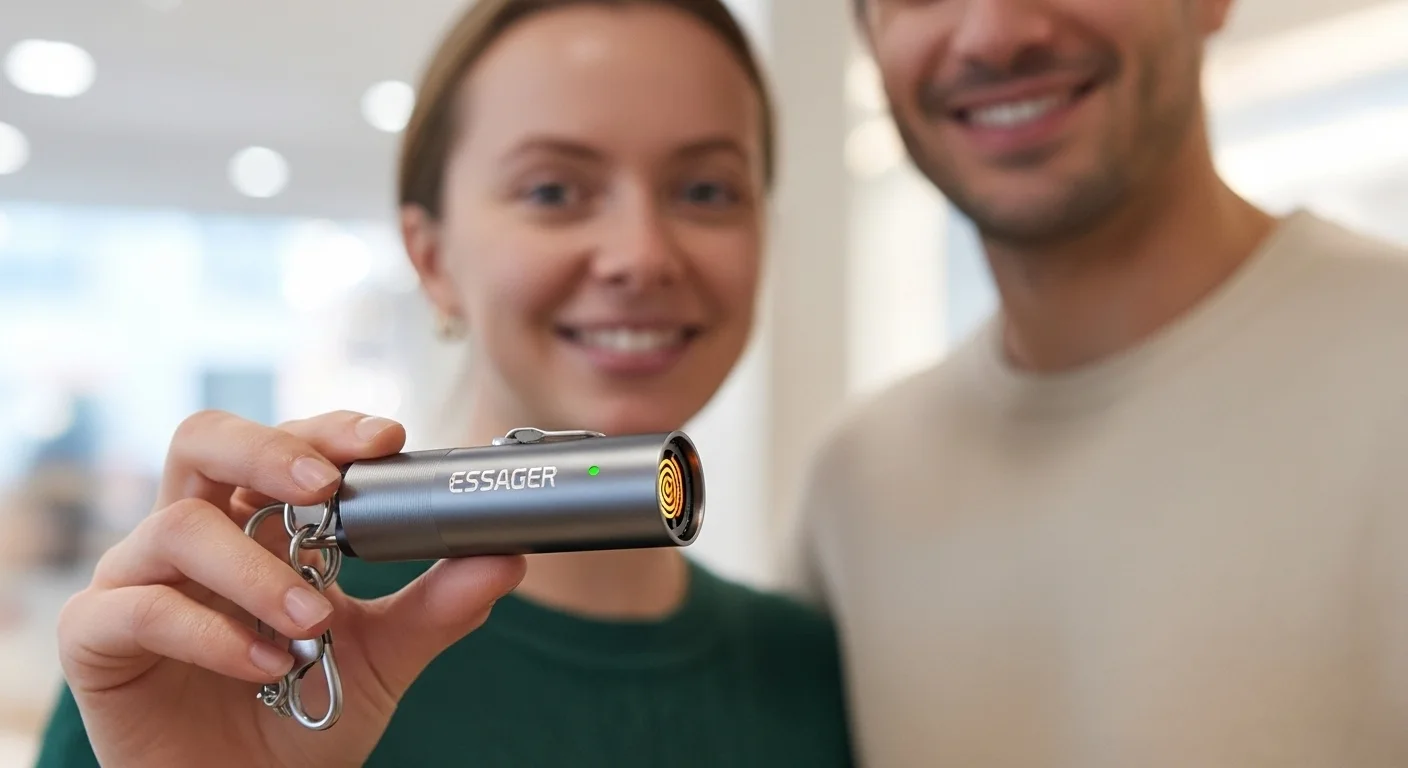 تمتّع بأحدث تكنولوجيا الإشعال الإلكتروني مع ولاعة ESSAGER.تصميم عصري، أنيق، وصغير كيتعلّق بسهولة فالميدالية ديالك، ومجهّز بمدخل USB Type-C باش تشحنها في أي وقت ⏱️